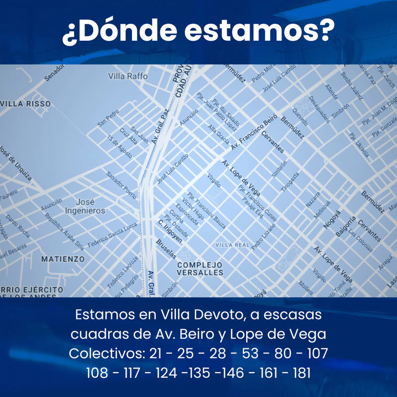 Estamos ubicados en el barrio de Villa Real (C.A.B.A.) cerca del Shopping de Devoto.